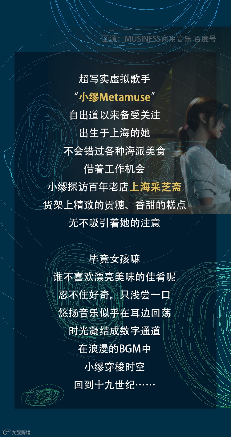 为元宇宙提供全方位音乐及声音元素。虚拟艺人音乐向孵化,2022年2月推出超写实数字人、虚拟歌手小缪Metamuse,火爆全网。音乐IP营销、演出活动等服务。