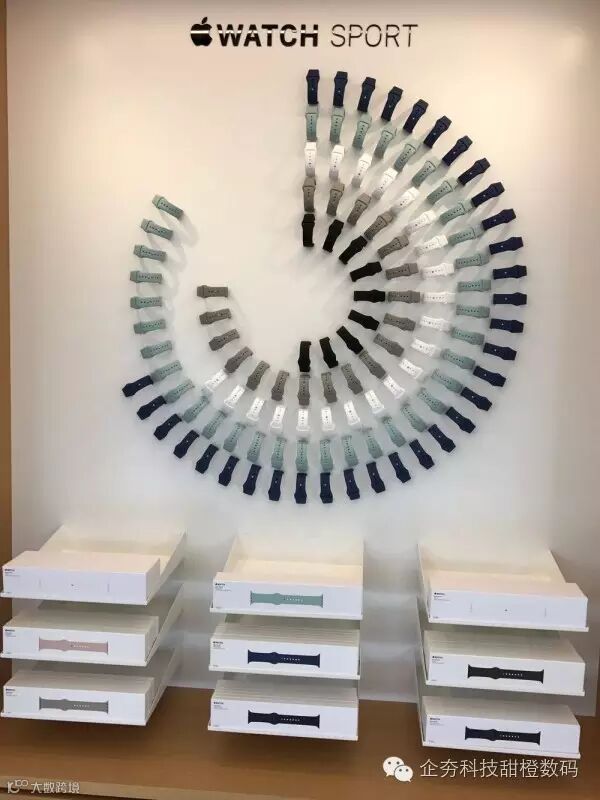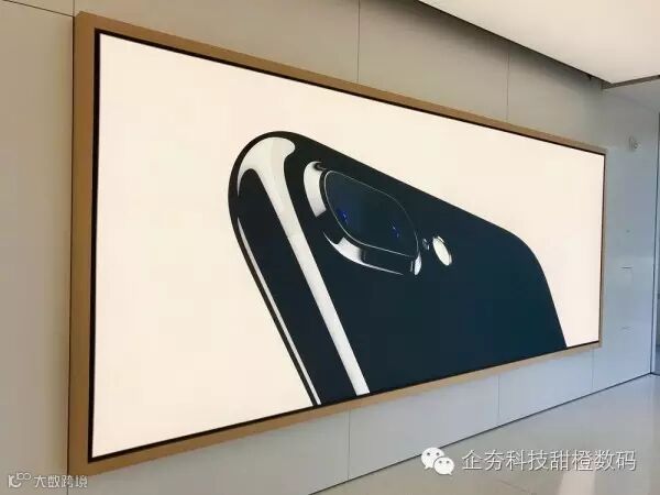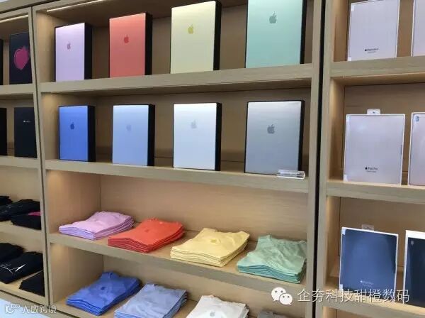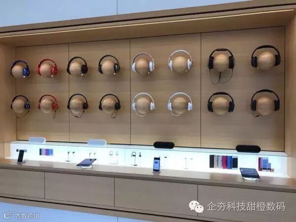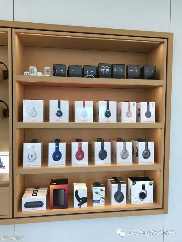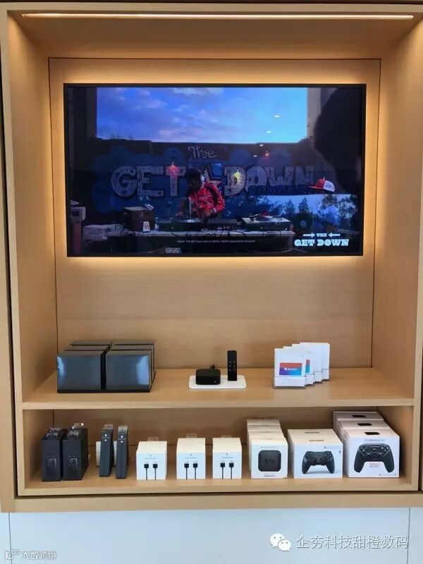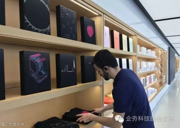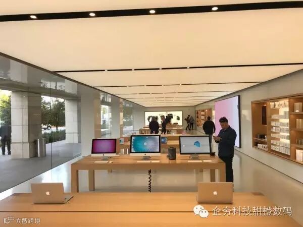 店面面积看上去只有标准苹果零售店的一半,苹果硬件产品和配件都能找到,还有一块巨大的显示屏展示最新的宣传资料。