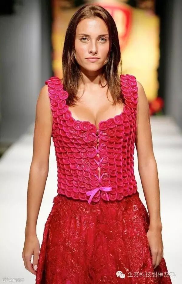 墨西哥第20届全球艾滋病大会上,这件礼服一展出即受到大家的赞叹,但是你仔细看的话,会发现这件礼服这居然全是由避孕套做成的。并且除这件之外还有一系列的作品,该作品是由巴西的艺术家阿德里安娜贝尔蒂尼作出的,这个系列被称为“安全套时装”,贝尔蒂尼女士在研讨会上表示,这些衣服的用意旨在提高意识,传递安全性行为的讯息。并为打击性传播感染和艾滋病毒做出努力。
