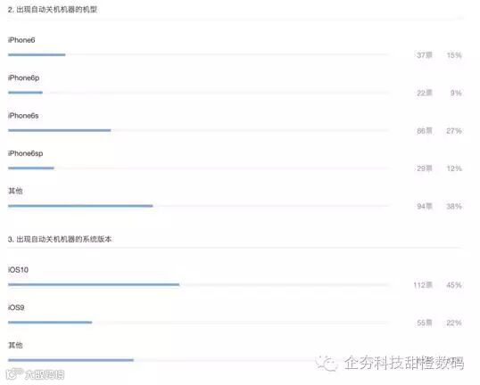 GeekBar在微博和微信做过调查,此次自动关机事件涉及到iPhone6/6p/6s/6sp等机型,系统也不局限于iOS10,iOS9等用户也出现了自动关机情况。