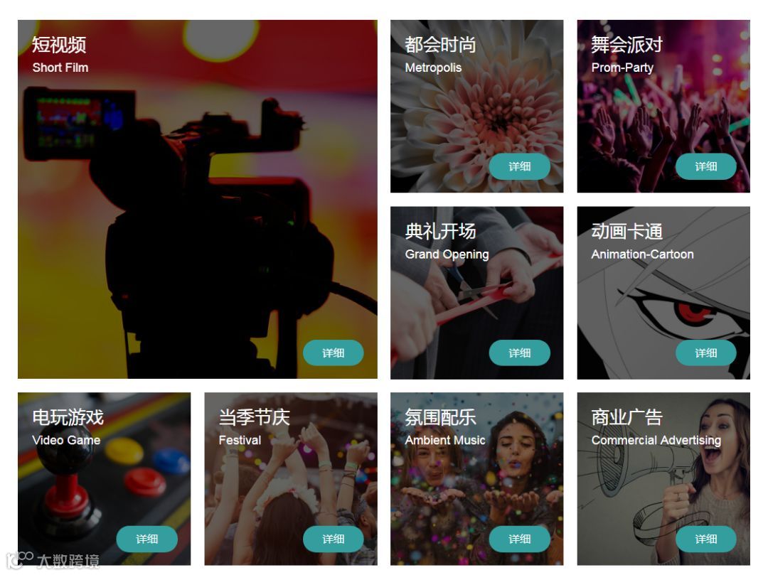 网站首页设置类别区块,短视频、动漫、派对、商业广告等专属音乐锁定,告别选择困难。更有“懒人推荐”的五星服务,^^