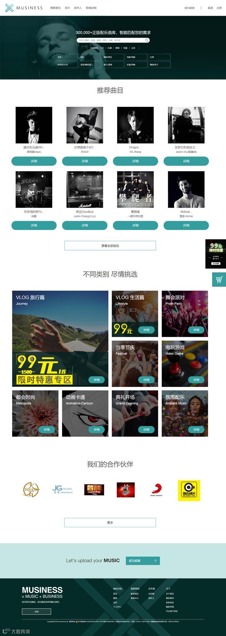 MUSINESS设计上线特惠专区,为适配项目提供精准歌曲。