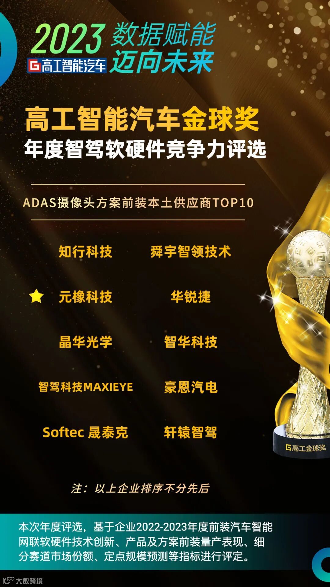 摘获行业殊荣,元橡科技当选「ADAS摄像头前装本土供应商TOP10」