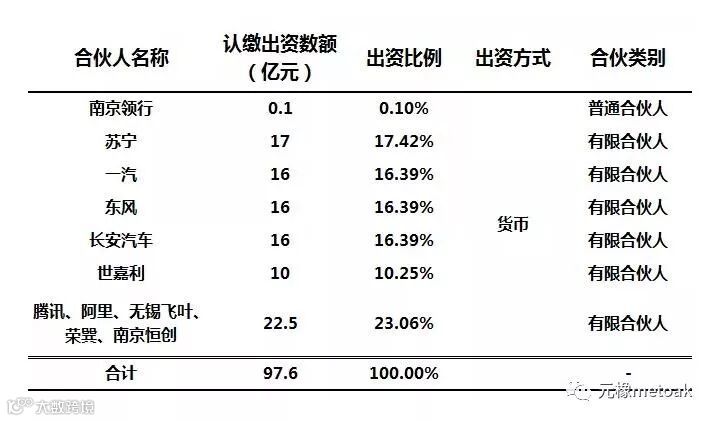 3月22日,长安汽车发公告称,其在南京签订协议,与苏宁、一汽、东风、腾讯、世嘉利、阿里、无锡飞叶、荣巽、南京恒创、南京领行共同投资设立南京领行股权投资合伙企业(有限合伙)总份额为97.6亿元,其中长安汽车、一汽、东风均认缴出资额16亿元。该项目以打造网联化、共享化的 “智慧出行新生态”为目标,以为社会公众提供高品质、高安全、高效率的出行和更加愉悦的生活方式为出发点,致力于成为中国最值得信赖的出行服务企业。
