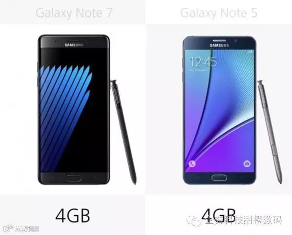 Note 5和Note 7在机身尺寸上非常接近,Note 7相对来说高点窄点,在厚度上要比Note 5厚4%。