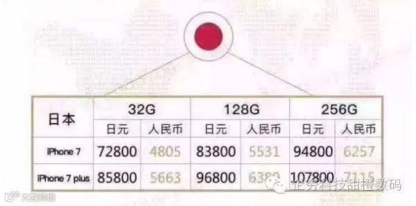 日本同样也是苹果非常看重的市场,而 32GB 的 iPhone 7/7 Plus 的售价分别为 72800 日元和 85800 日元,约合人民币 4765 元和 5616 元 ,不过这里的日版 iPhone 7 售价是税前价格,日元虽然汇率上涨,但是 iPhone 7 的官方售价下调,在不含消费税的情况下,日版的售价与港版的很接近,如果你刚好要去日本采购电饭锅,或者你会想顺便带回来一部 iPhone 7 。