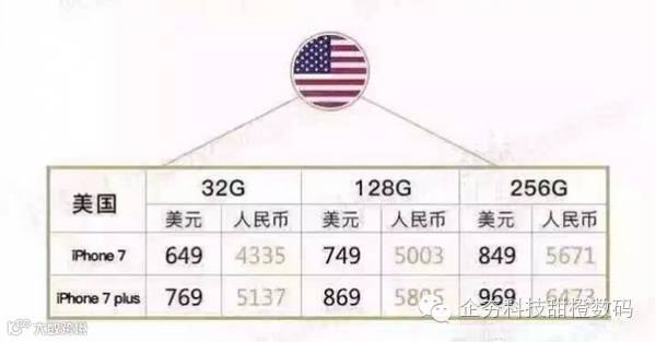 首先看一下美国本土 iPhone 7 的售价,在它的老家,32GB 版本的 iPhone 7/Plus 的售价为 649 美元和 769 美元,约合人民币 4322 元和 5121 元。