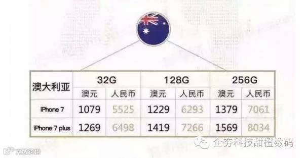至于澳大利亚,32GB iPhone 7/7 Plus 的售价分别为 1079 澳元和 1269 澳元,约合人民币 5509 元和 6479 元,售价比国行版的还要贵,看起来寻找澳大利亚方面的渠道购买 iPhone 7 可不是什么好选择。