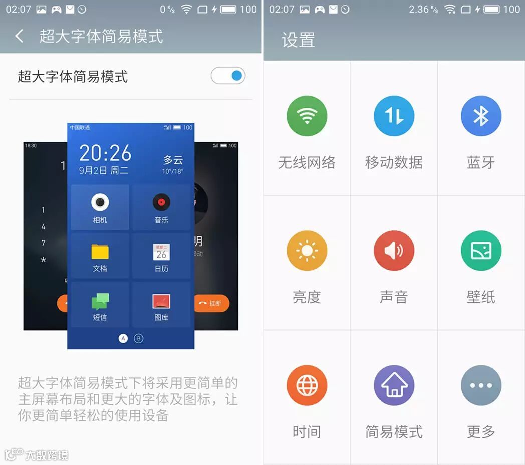 不过魅蓝系列机型与魅族MX系列不同的是,在系统设置中一直存在一个“超大字体建议模式”,可能在定位魅蓝部分机型时,其实是想将其当做送个“家人的礼物”。所以魅蓝E系列在这个功能上也得到了继承延续。