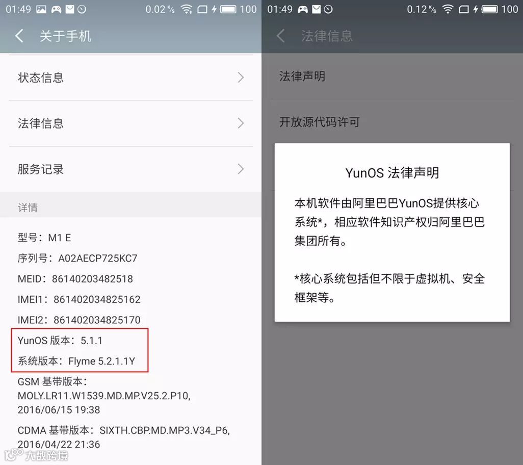 5) 手机固件:魅蓝E采用了Flyme 5 powered by YunOS 系统,简单些就是YunOS底层的Flyme系统,通过近一年的数次迭代,Flyme已经升级至5.2.1.1版本(YunOS版本:5.1.1),我们已经在魅蓝E手机系统中无法找到YunOS的影子,满满的都是Flyme始终如一坚持的轻快,精致,流畅的精简风格,从操作习惯已经界面统一完整性上,在过程安卓OS定制中独具风骚。