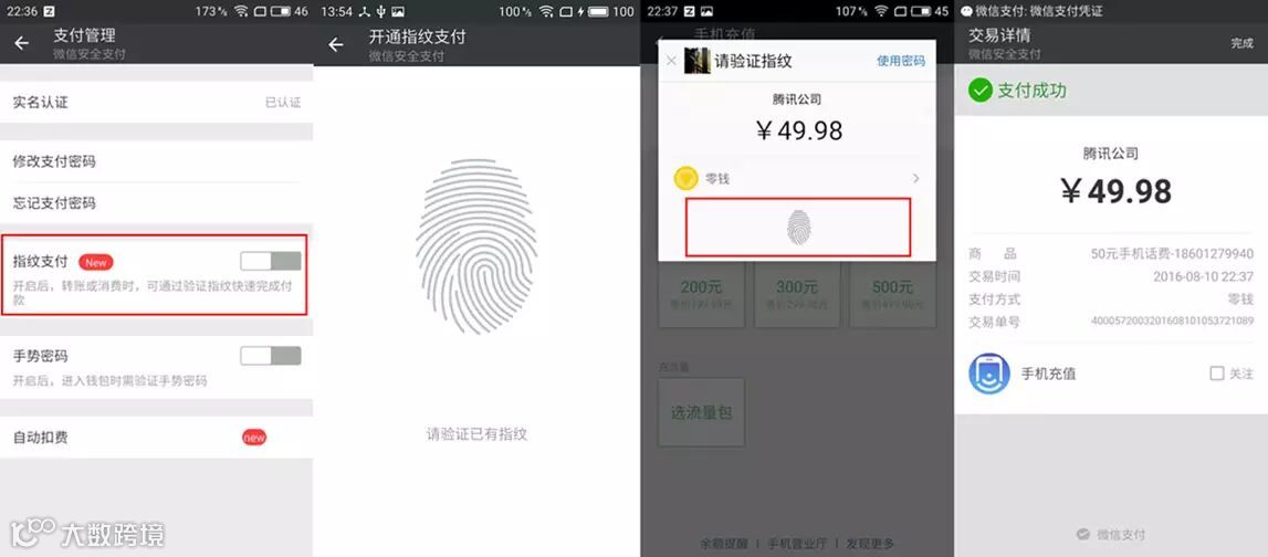 微信指纹支付: