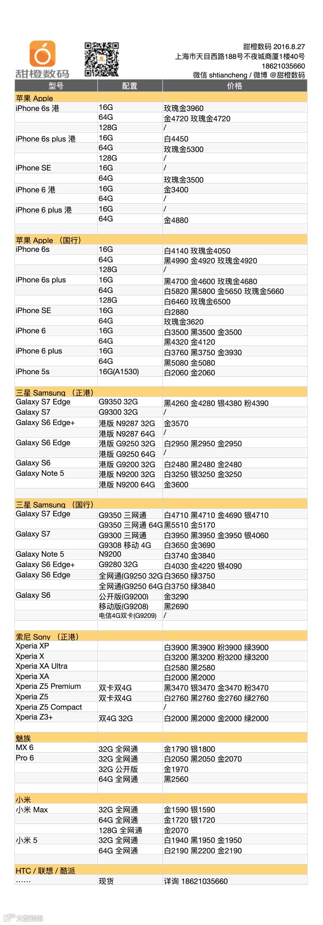 新机型发布的时间越来越近,iPhone 6s 及 plus 港版国行版双双降价销库存,今天伴随价格的走低,供货也是逐步缩窄的;三星 Galaxy S7 Edge 再次走低;魅族新机小有反弹,而小米则是稳步前行。