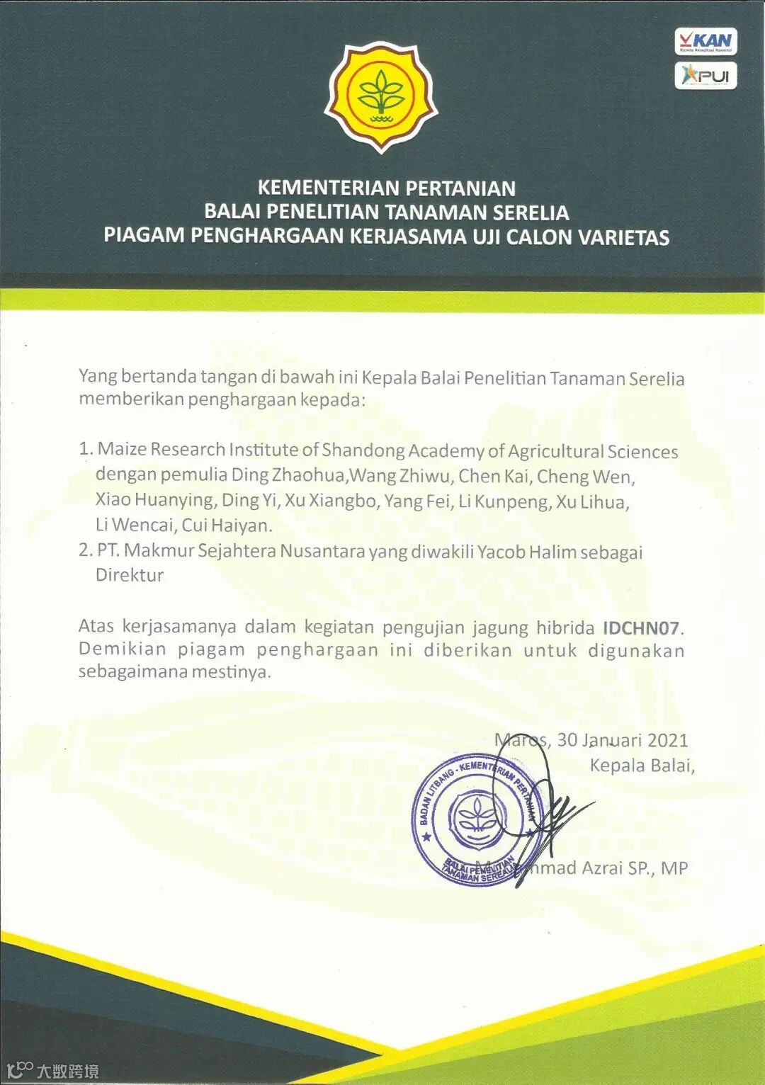 本次审定品种,由两国专家在印尼历时10余年选育而成,这为印尼玉米生产发展,以及农业科技创新均产生重要影响,切实实践了“一带一路”倡议。