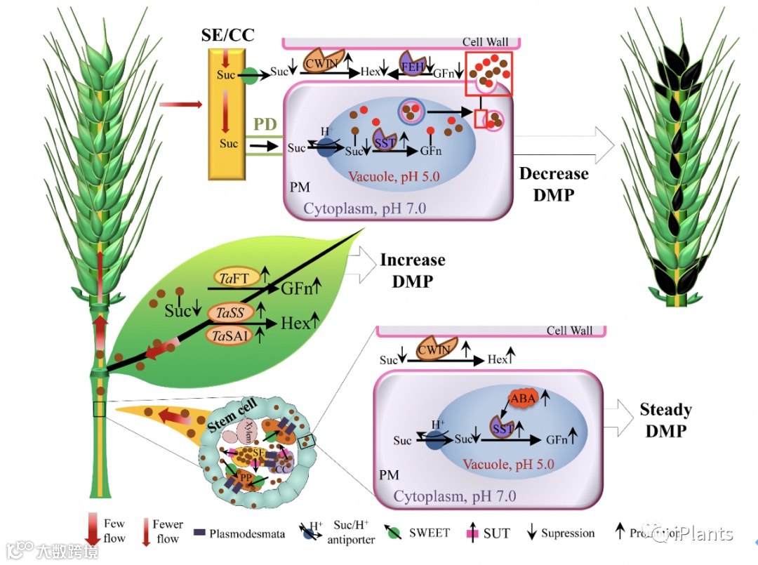 近日,中国农业大学农学院张英华研究小组在Journal of Experiment Botany和Field Crops Research 分别在线发表了题为“Suppressed ABA signal transduction in the spike promotes sucrose use in the stem and reduces grain number in wheat under water stress”和“Spike growth affects spike fertility through the number of florets with green anthers before floret abortion in wheat”的研究论文。这项研究揭示了干旱降低小麦穗粒数的生理机制,并提出了增加可育小花数的新方向,为小麦抗旱节水保花增粒提供了重要参考。