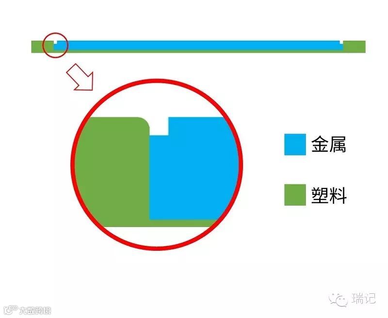 在 MX5 和 Metal 上,天线溢出口的塑料是用注塑工艺直接和金属结合在一起的,这样的好处就是注塑后的元件可以直接当作一个整体进行 CNC 加工。而在 note 3 上,用胶粘合的塑料和金属部分,必然会遇到一个问题,就是落差错位。