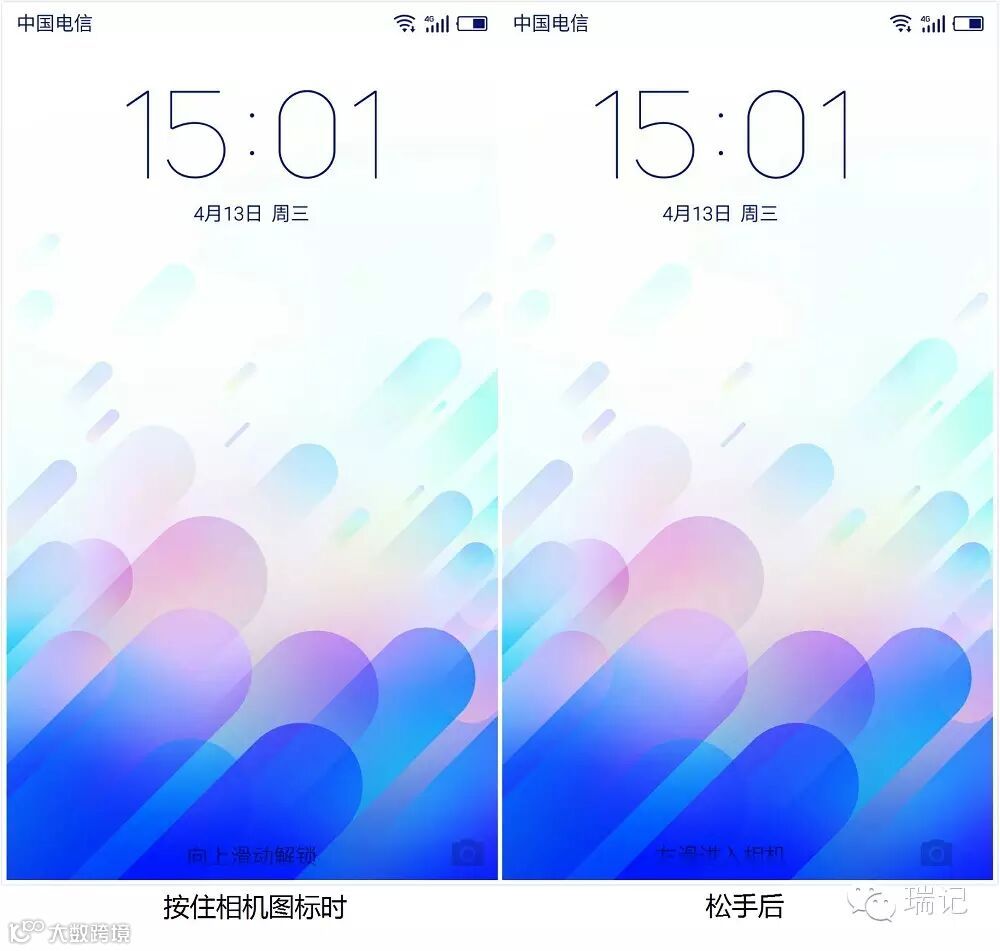 锁屏界面左滑可以进入快速拍照,不过能否像原生系统一样、在按住拍摄标志之后提示滑动轨迹呢?虽然现在在点击相机图标时有「左滑进入相机」字样和界面左滑动效,但一旦按住该图标却反而不会有任何提示(而且此时还可以上划解锁……),对于非 Flyme 老用户来说不够友好。