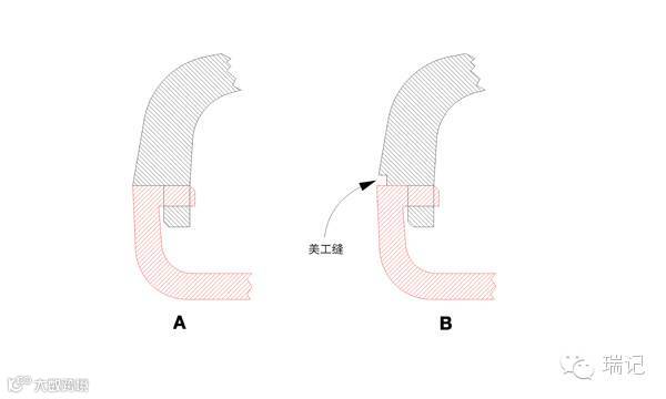 当两个组件拼接到一起,由于生产公差的存在,组件的表面无法完全拼合,会出现高低错位,这就导致摸上去的手感非常差。设计上解决这个落差的常用方法是,在其中一块材料的边缘(或者沿着接缝)开一道槽,一方面对使用者强化这个缝隙的存在,另一方面拉开距离的两个物体,使落差更难被感知。