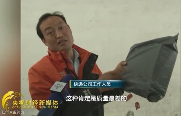 快递公司工作人员:(这种包装)灰黑色的,而且中间带白丝的,这种肯定是质量最差的,这个不用说,肯定是不环保的。