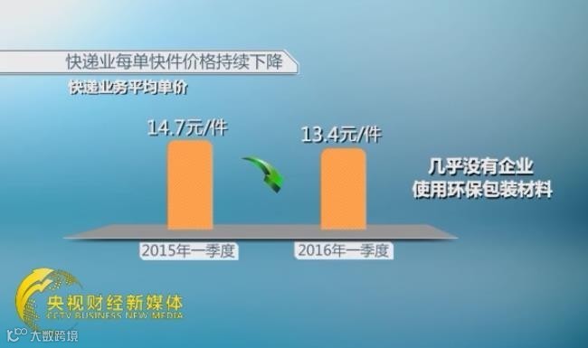 而快递包装中大量使用的胶带主要的材质是聚氯乙烯,需要近百年才能降解。但是目前,国家对于快递运输中存在的包装问题并没有具体规定,而快递公司如果将普通塑料产品替换为环保可降解的包装材料,势必会增加成本。目前快递业每单快件价格持续下降。2016年一季度,快递业务平均单价由去年同期的每件14.7元下降为每件13.4元。在这种情况下,几乎没有企业愿意使用环保包装材料。