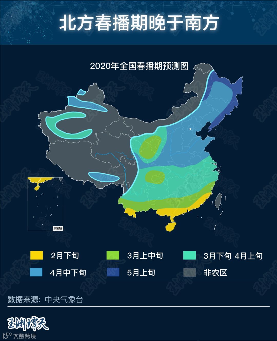 这是中央气象台对春播期的预测图,明显看出从南到北的春播节奏,从农时看,4月份和5月上旬才是多数北方地区的春播期。不过,从目前官方发布的疫情防控的情况看,春耕与疫情的防控期依然高度重合。