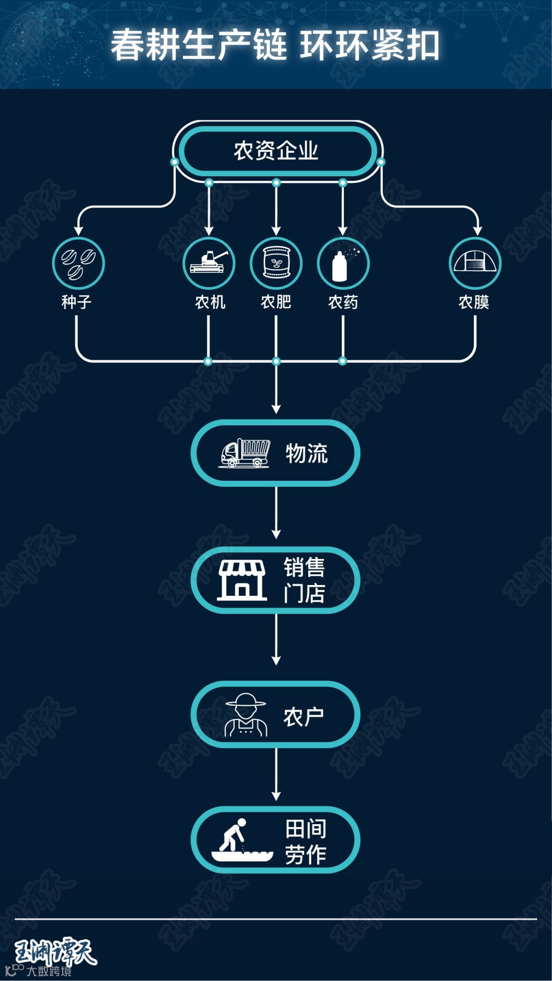 春耕究竟受多少因素影响?如这张示意图。一环扣一环,哪个环节出问题,春耕不顺畅,咱的饭碗就会受影响。