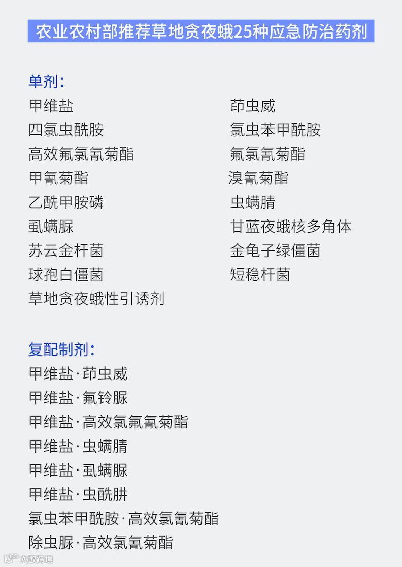 农业农村部6月3日印发关于做好草地贪夜蛾应急防治用药有关工作的通知。通知针对草地贪夜蛾入侵中国18个省份,提出了25种应急使用的农药产品,要求各地农业农村部门结合当地实际情况选择推荐药剂,推荐给农民使用。
