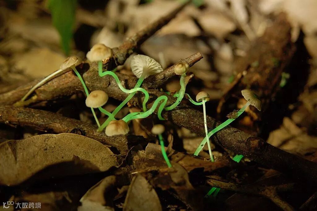 ❷荧光小菇Mycenachlorophos又名荧光蕈、夜光茸,是一种木栖腐生的小型菇类,生长在春夏季的低海拔林区。这种真菌主要分布在日本、波利尼西亚、澳大利亚等地。