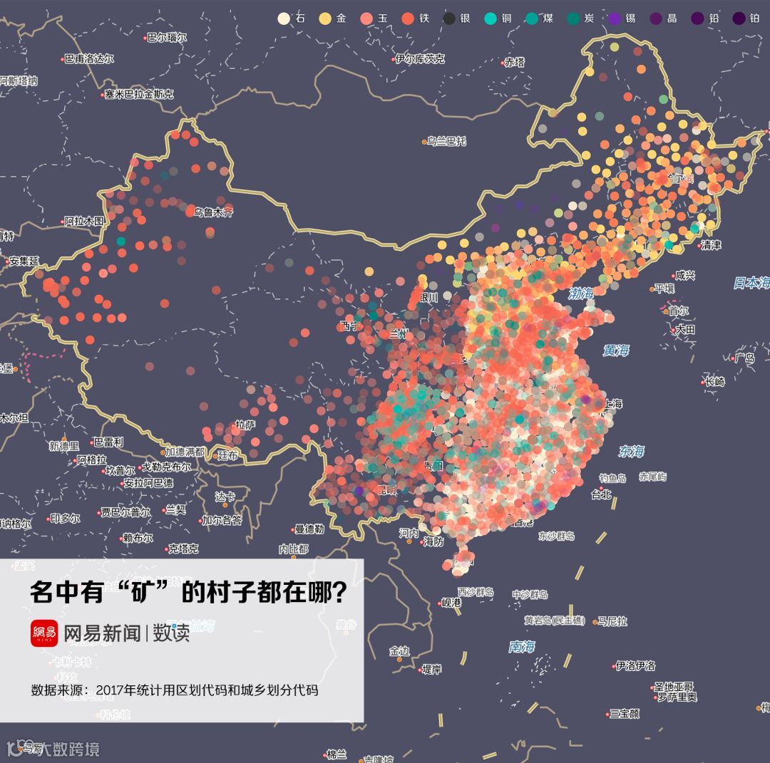 除此之外,中国人还把自然馈赠的财富写进村名。中国村名中,出现了大量的金属矿名。