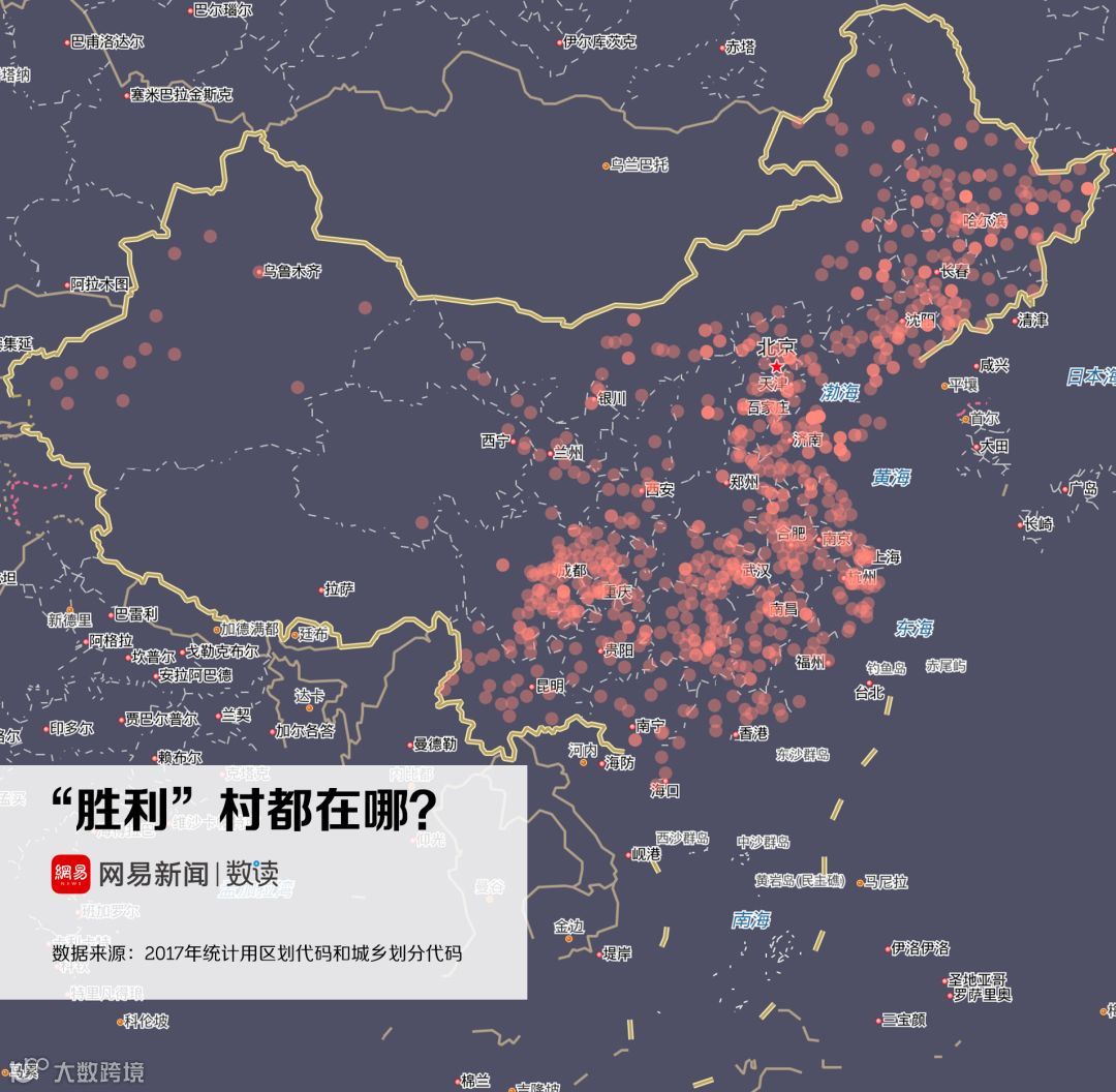 除此之外,不难发现,中国村庄的命名都对“和平”、“团结”、“胜利”等饱含正能量、并能引发红色记忆的词汇格外青睐。