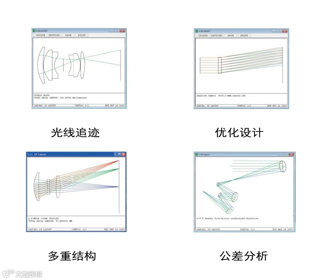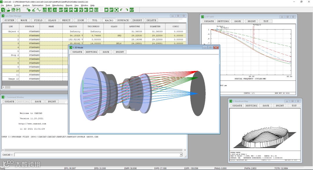 CAXCAD是一款功能强大、易于使用、价格实惠的光学设计软件,支持多种面型,提供光线追迹、几何和衍射分析等各种工具,采用DLS算法优化光学系统。软件采用底层编程技术开发,因此在速度和兼容性方面都表现出色,除此之外软件本身包含的独有模块更让其与众不同!