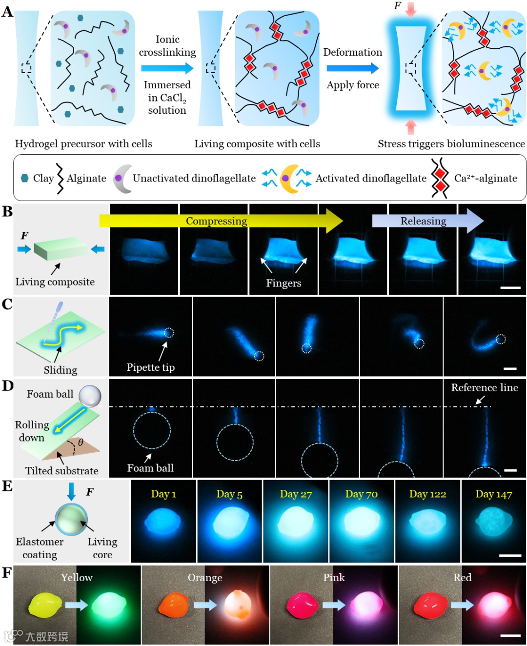 在自然界中,对力学刺激的感知是活细胞的基本特性,它使得细胞能够检测、解读、响应并适应外部复杂环境。此外,力学感知在工程领域中也发挥着重要作用,如可穿戴设备和软体机器人等。尽管科研人员已经开发出多种材料和结构来感知力学刺激,但人造系统在灵敏度、能源利用效率和自主水平等方面仍然远远落后于生物系统。与此同时,近年来,生物融合(biohybrid approach)已经成为一个新兴的将生物功能嵌入到人工材料的热点领域。但迄今为止,却鲜有研究报道具有力学感知功能的活性材料体系。此外,如何用简易的方法制造活性材料、延长其寿命、缩短其响应时间、降低其维护成本,仍然是制约活性材料实际应用的关键因素。