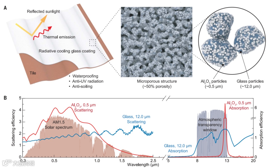 此外,研究团队通过在材料中混合能够在太阳光谱范围产生米氏散射的氧化铝颗粒来进一步提高涂层的太阳光反射能力。不仅如此,氧化铝颗粒还可以作为抗烧结剂,能够有效避免复合材料中玻璃颗粒的过度致密化,有助于维持材料的多孔结构。