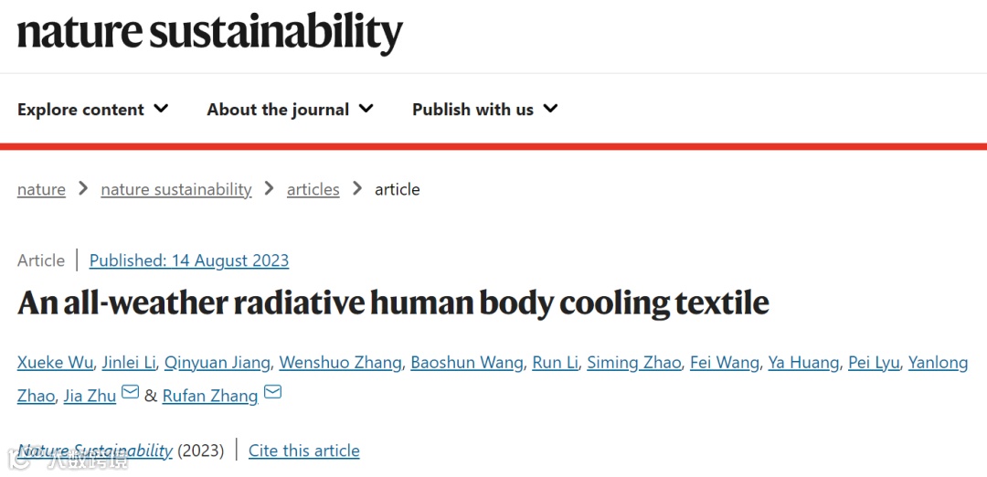 前沿|清华大学张如范/南京大学朱嘉合作Nature Sustainability:穿上这件衣服,凉快一整天!