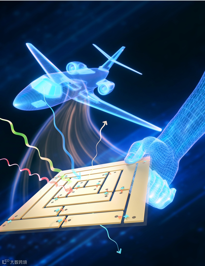 图 2 文章封面艺术效果图(超薄相连单元间相位相互抵消降低反射,有望应用于飞机等各类对厚度要求苛刻的装备中)