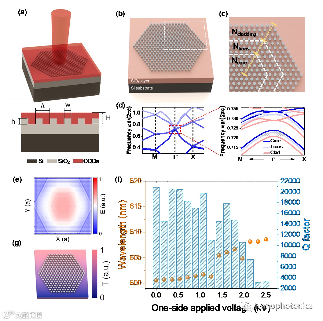 研究团队开发了一个可溶液加工的,具有高鲁棒性的氧化硅/量子点异质集成平台,可用于实现低阈值小发散角的准BIC激光器。在此基本设计原理下,通过使用合适的增益介质,可以将激发波长从可见光调谐到红外波段。由于单个光子晶体谐振腔的占地面积非常小,可以将其做成阵列,做一些有趣的单色甚至多色的显示应用。此外,氧化硅的折射率接近于大多数聚合物,可以将这种设计转移到柔性基板上,这可以实现各种有趣的应用,如通过机械拉伸调谐波长和生物特征信息识别等等。