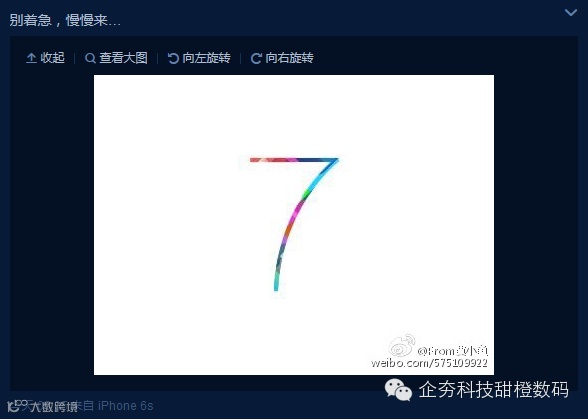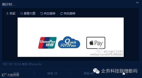 今天该微博用户还发出了一张令人浮想联翩的图片,该图片上出现的数字“7”,似乎是暗示距离 Apple Pay 正式上线还有 7 天。如果该消息属实的话,那么 Apple Pay 正式登陆中国地区的时间可能会是 1 月 19 日。