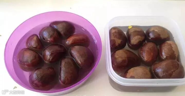 ①挑选几个饱满完整没有发霉的板栗,尖头朝下,放入清水中浸泡。水位没过板栗一半就可以,水多了可能会腐烂,每天换一次水。