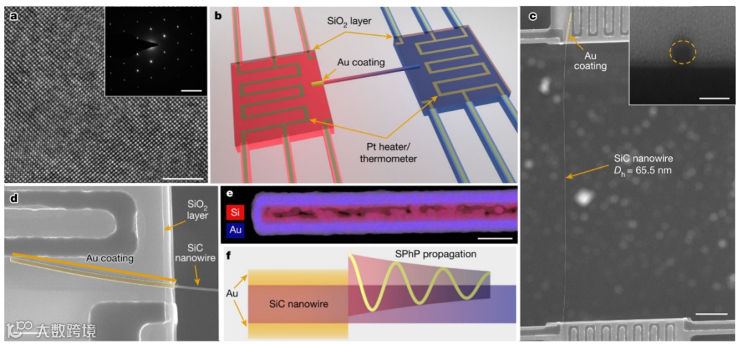 在研究中,研究人员发现通过在硅碳化物(SiC)纳米线上涂覆金(Au)层可以显著增强声子热导率。他们发现,涂覆Au层后,纳米线的热导率远远超过了兰道尔极限,即在热平衡条件下的理论上限。
