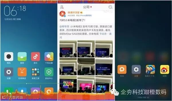 通过桌面滑动、微博滑动在GPU悬乎曲线的测试,均得到MIUI一如既往的流畅表现,在开启将近30个程序后(包括两个中大型游戏),还剩下745M运存,3GB RAM在日常使用保证了足够多的冗余内存。