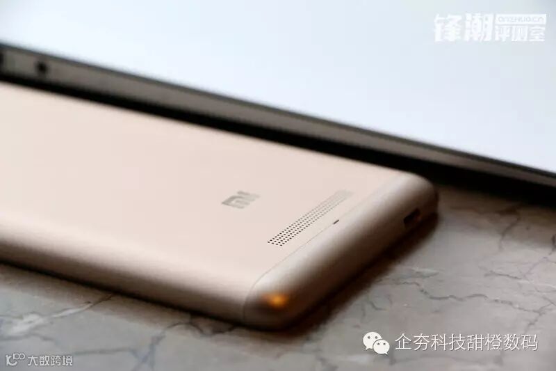 红米Note 3背面采用全金属三段式设计,依然是上下注塑中间金属的分割处理,另外上下两端着色明显偏深,金色版的衔接处则相对没那么自然,值得注意的是中间这块金属实际上比较薄,敲下去即能明显感觉到,不过并不会影响手感也不必担心坚硬度,看来都是为了里面那块大电池。据小米称,金属机身的红米Note 3在机身重量上仅仅比塑料机身的红米Note 2重4g,相当增加了一个硬币的重量而已,电池容量即增加了将近1000mAh,总重量为164g,是配置4000mAh电池手机中最薄的。