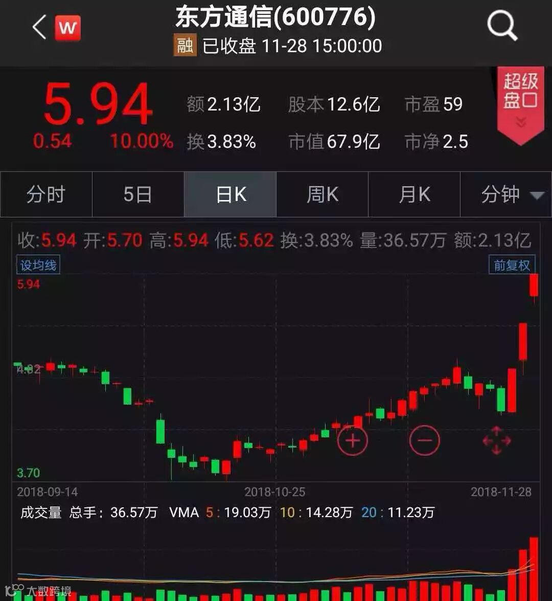 近日,5G频段划分新鲜出炉,广电及三大运营商正紧锣密鼓地抢占市场高地,布局5G时代最大受益者物联网的厂商已经“主动出击”。 盘面上,5G概念同样备受资金追捧,东方通信已经连续三个涨停。不过,尽管5G应用离我们越来越近,但正如公司提及,目前国内5G网络建设尚未正式启动,该产业参与5G通信网络的建设及参与份额尚存在不确定性,个股仍属于概念股炒作阶段,多为游资主导。如果盲目追逐被套,得不偿失。