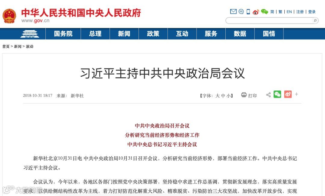 中共中央政治局10月31日召开会议,分析研究当前经济形势,部署当前经济工作。