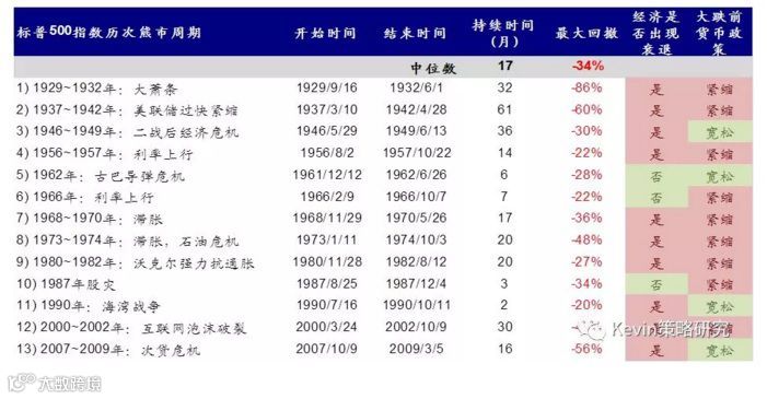 标普指数历次熊市周期