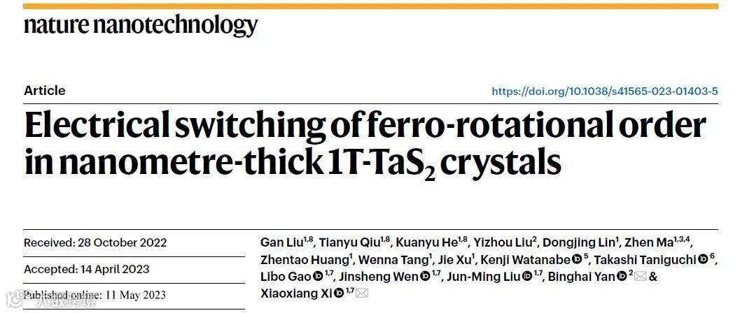 南京大学奚啸翔教授与魏茨曼科学研究所颜丙海教授为论文的通讯作者。南京大学物理学院博士生刘敢、硕士生邱天宇与何宽鱼为论文的共同第一作者。南京大学温锦生教授课题组提供了高质量二硫化钽单晶样品,高力波教授课题组协助了原子力显微镜测量,刘俊明教授参与了实验结果的讨论。日本国立材料研究所Takashi Taniguchi和Kenji Watanabe课题组提供了氮化硼晶体。该工作得到了国家重点研发计划、国家自然科学基金和中央高校基本科研业务费的资助,以及南京大学物理学院、固体微结构物理国家重点实验室和人工微结构科学与技术协同创新中心的支持。