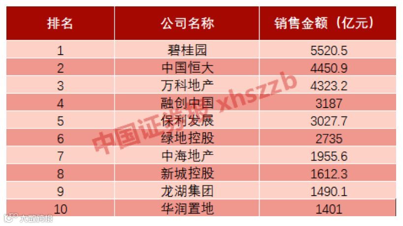 前三季度中国房地产企业销售额TOP10