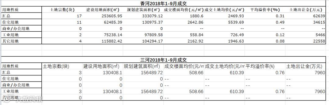 中国指数研究院数据显示,香河地区2018年1-9月份成交土地均价不足2500元/平米。