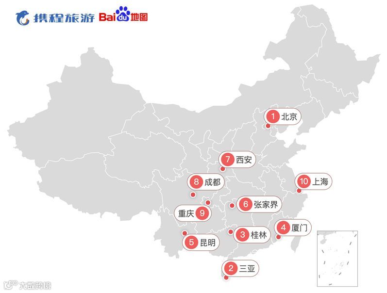 近日百度地图、交通运输部科学研究院、携程旅游联合发布的《2018年中秋国庆出行预测报告》,对国内人气最高的目的地城市进行预测,前十分别是:北京、三亚、桂林、厦门、昆明、张家界、西安、成都、重庆和上海。