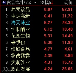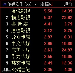受益于长假带动消费,旅游、食品饮料、娱乐传媒股票也是屡屡异动。