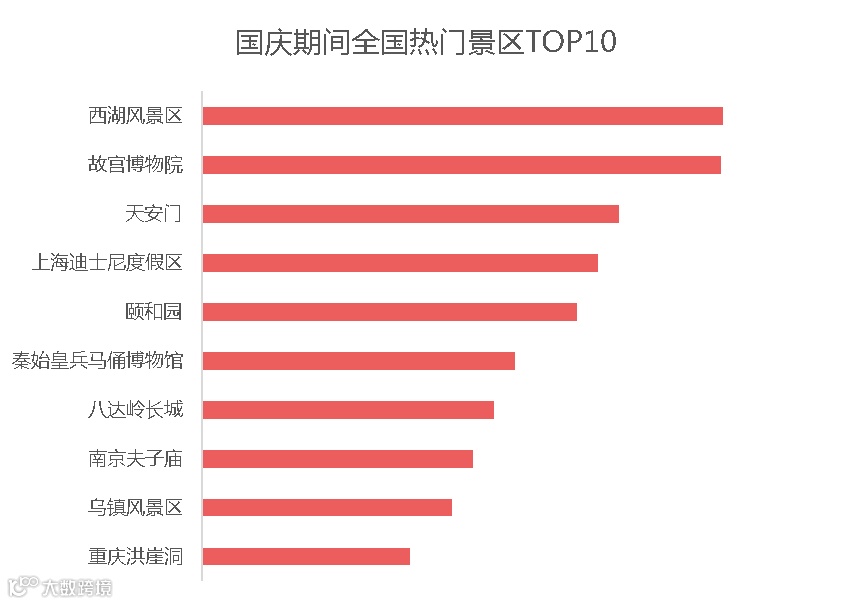 (假期热门景区TOP10,来源:2018年中秋国庆出行预测报告)