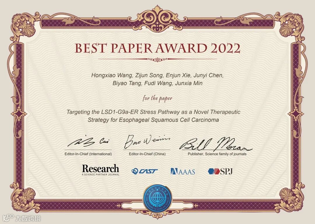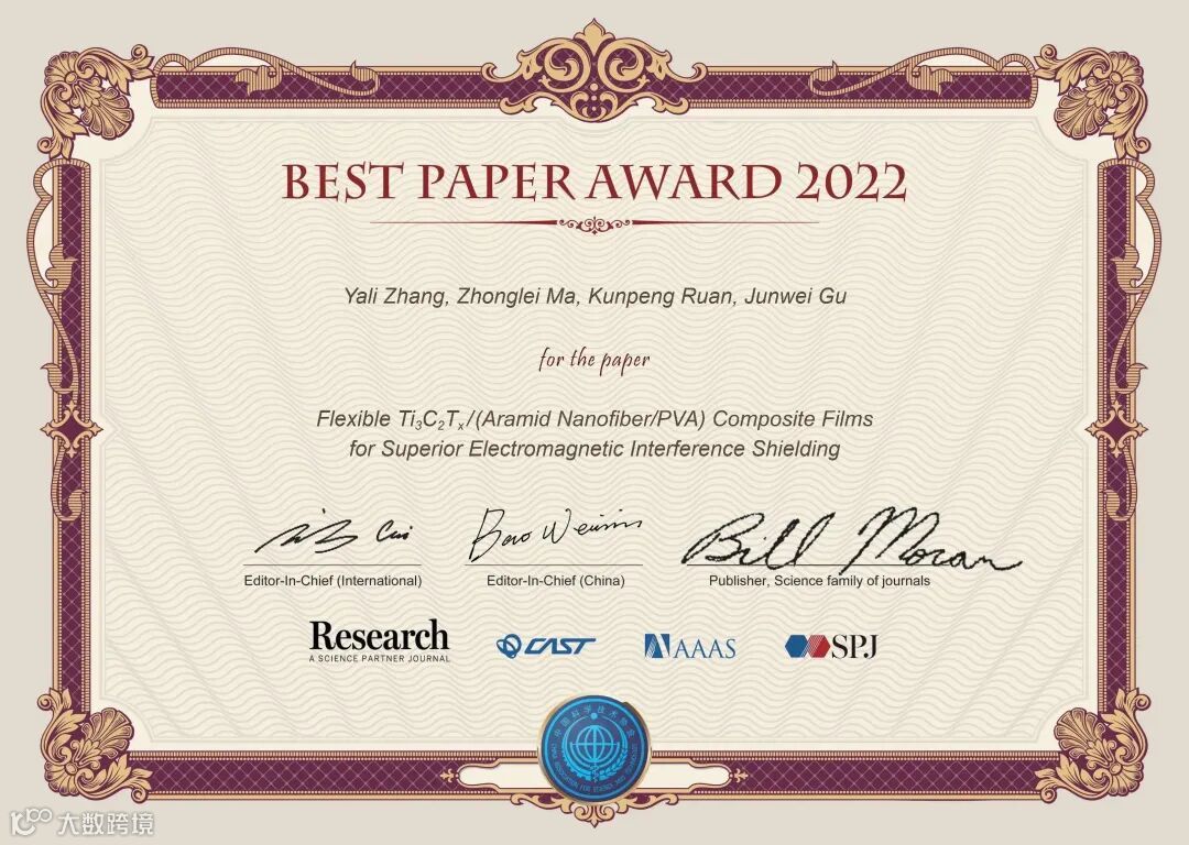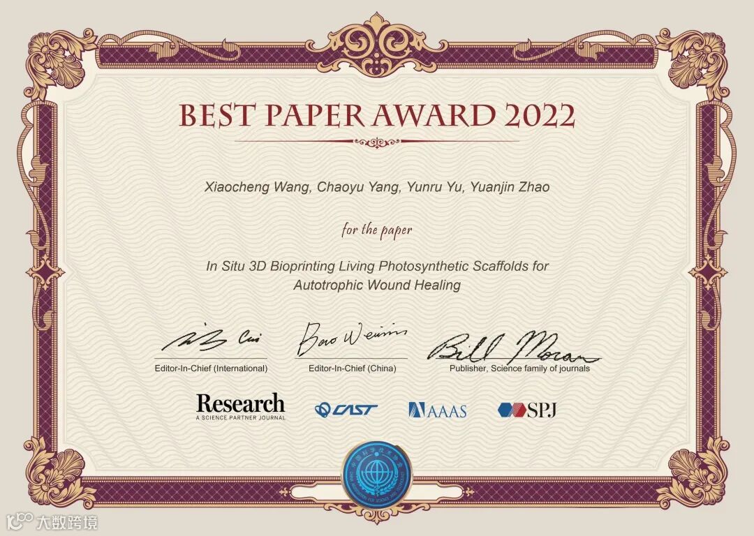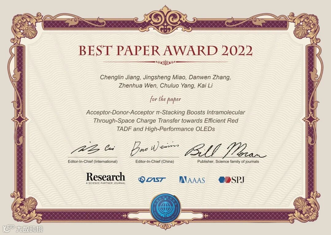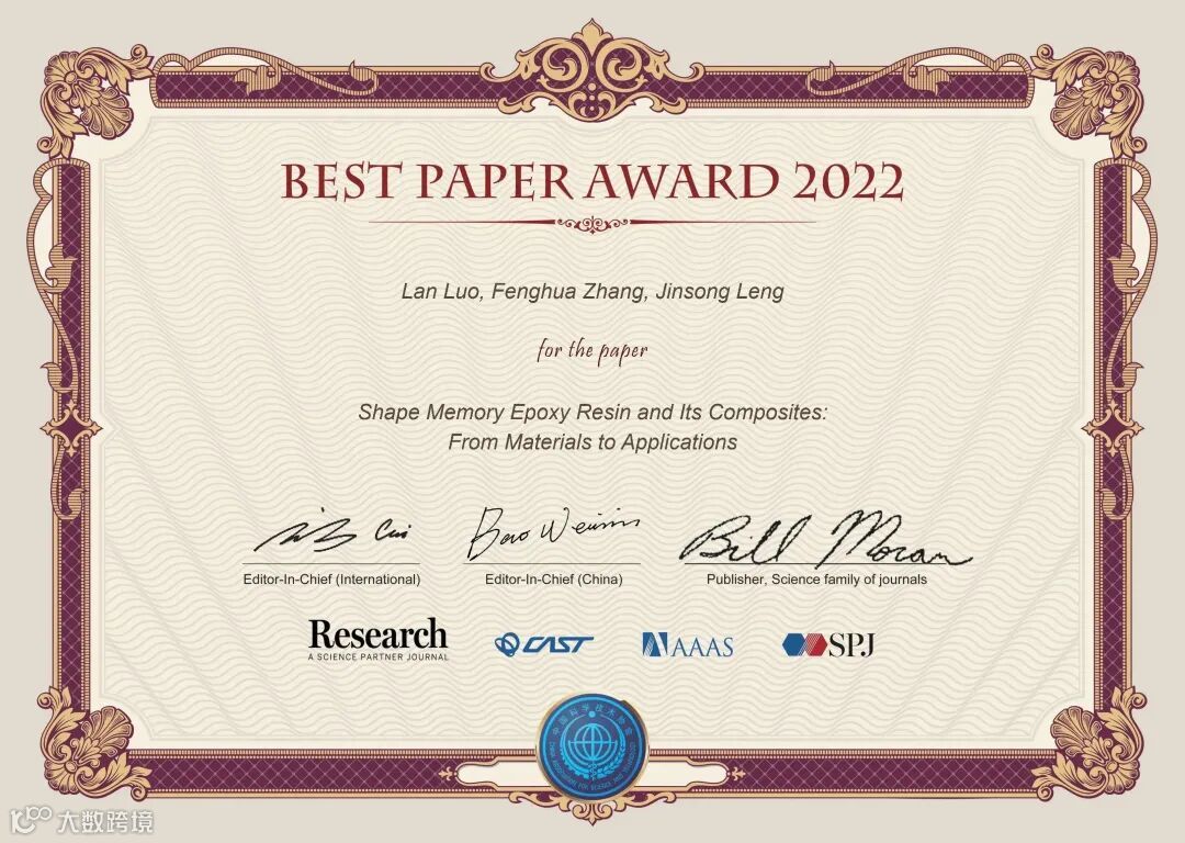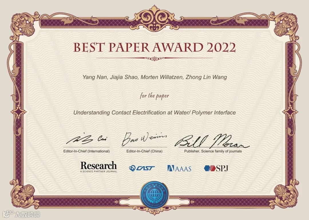 《Research》2022年度优秀论文评选,经过了编委推荐候选文章、主编确认、大规模网络投票等环节,共评选出了20篇优秀论文。这些文章将在《Science》的主页进行重点推广、通过《Research》视频号进行可视化宣传、举办优秀论文作者学术报告会,给作者颁发由两位主编和《Science》出版人签字的证书,邀请参加年度编委会会议,主编将向作者约稿一篇,并免费出版。